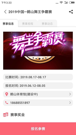 广东舞王争霸赛成立于2017年,是一个专门打造全国及至全球优质舞蹈品牌赛事平台。我们追求的理念是:团结协作、共赢发展,为每一间舞蹈艺术院校、培训中心以及舞者提供一个更加绚丽的舞蹈展示平台。公司的愿景是打造一个全球范围的赛事品和赛事APP。平台成就梦想,让世界没有难做的赛事,让赛事变得从未有的简单和高效。