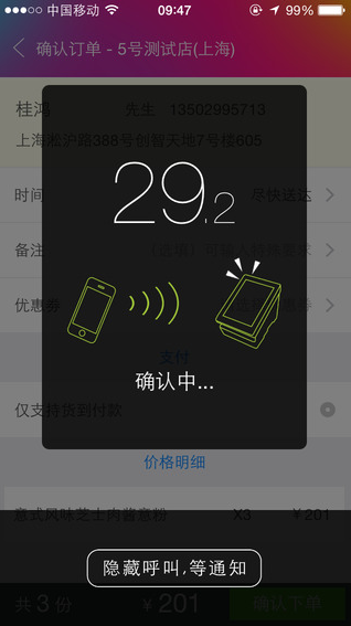 5、通过iphone推送通知实时告知您订单状态,还会第一时间告知您外卖送出时间哦,无需电话催促即可在您预订的时间内送货上门。