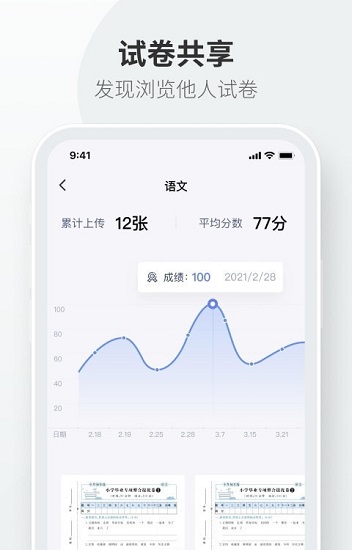 试卷拍拍能够记录你的各科分数成绩,然后进行每一次分数记录分析,得出每次问题所在,非常清晰,一目了然,还有试卷可以进行共享,可以浏览他人的试卷进行对比,找出自己的不足,学习他人的解题思路,更有考卷收录,能够快速帮你进行整理试卷,分类存放,它能够帮助你提高自己的学习成绩,提升学习水平,是一款值得下载使用的学习软件!