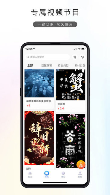 海量创意素材可供挑选,为您省去制作素材的烦恼。素材内容广泛,涉及:餐饮,美食,数码,美妆,快消,特效,节日,打折等等,满足不同场景的使用需求。