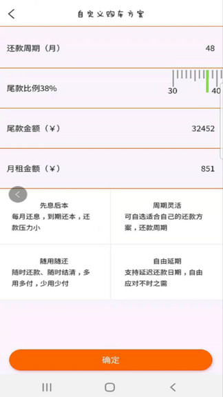 拥有三大购车方案推荐,当然也可以自定义购车方案,申请购车;