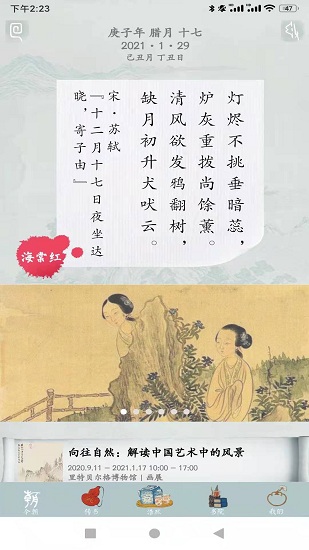 2、你可以看到“日见诗痕”、“每候一色”、“千载今朝”等栏目,希望大家开卷有益,借此抛砖引玉。