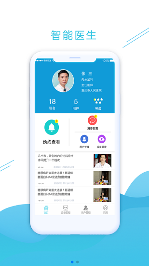 管理慢病患者的异常数据,患者可以向健康顾问咨询相关问题,并设有预约、文章、病情解读等功能。随时查看患者档案,服务患者更贴心、更舒心。