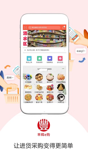 丰辉e购APP,提供线上客户订货及商品在线展示服务b2b订货商城。丰辉e购APP核心产品,为消费者、商家提供互联网订货平台,促进市场消费频次和实现快速、便捷随时订货。