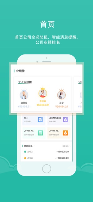 3、业绩数据统计分析,不仅得到业绩排名、业绩报表而且能够查看业绩总览和个人业绩明细;
