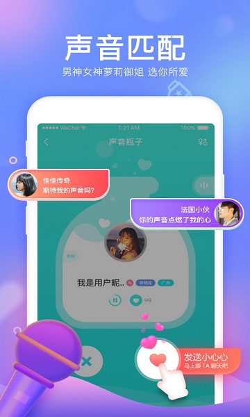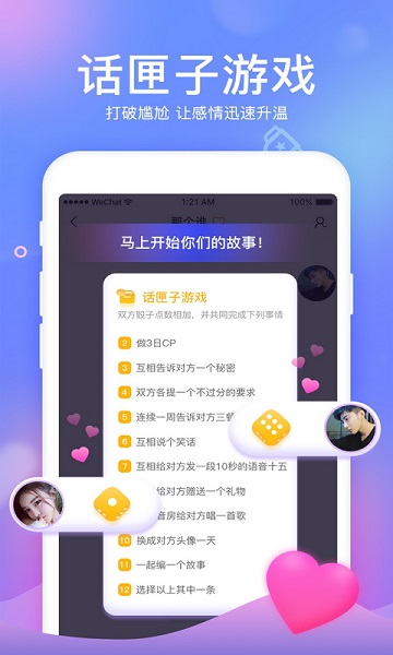 1、一键语音速配,开启甜蜜有趣的恋爱。
