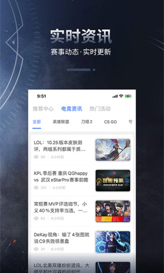 4、电竞资讯实时更新,用户可以随时查看,了解资讯更加的简单方便;