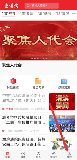 1、打开爱渭滨APP,点击底部导航栏的我的,进入个人页面。