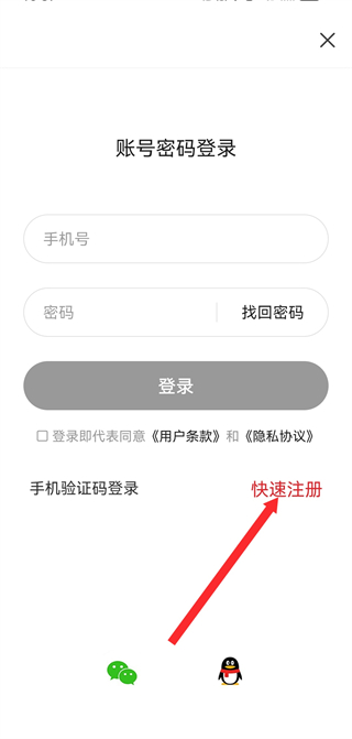 3、在登录的界面,点击快速注册,进入注册的页面。