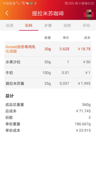 2、可以了解到所有出售的食品配方和成本;