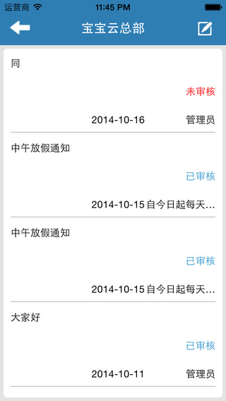 宝宝云园长版是专为幼儿园园长打造的服务应用。有了它,可以方便园长管理校园的各种事务,还可以直接和孩子家长联系,直接听取家长们的建议,以及对老师们的评价,更好改进管理方式,促进幼儿园的长久发展。