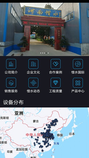 2、包含惜水公司简介、企业文化、合作案例、惜水国际、售后服务等功能,一些公司设备以及保养等。