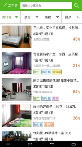 精准搜索:按小区名称、区域、商圈、总价及面积等信息即可筛选出你想要的房源。