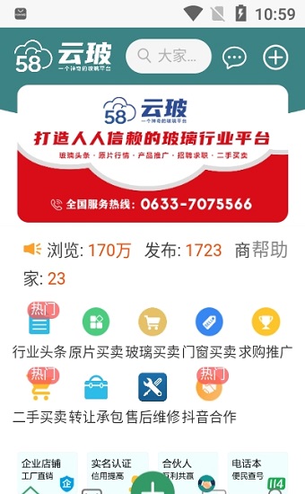 58云玻是人人信赖的玻璃行业服务平台,海量行业信息免费发布、查询。覆盖全国大中小城市,汇聚大量个人与商家信息。 真实、高效、免费,玻璃行业服务大全,让您的生意更简单!