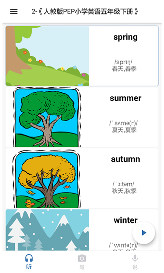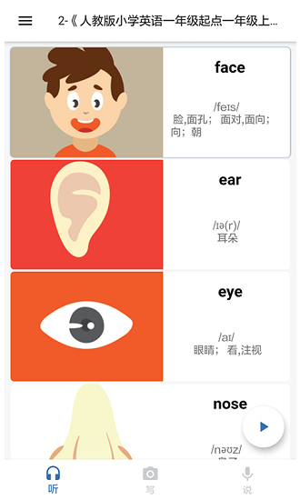 我说你写是一款非常好用的英语学习软件,里面拥有大量的英语词汇,帮助孩子快速学习英语,并且还有图文解析,能够让孩子加深印象,并更好的进行理解和记忆,还能在线进行书写检查,了解孩子的学习状况,满足了用户学习英语的需求,有需要的用户赶紧来下载使用吧!