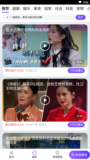 1、随时都可以在线参与阅读文章、短视频、资讯等任务,花几分钟就能赚到零花钱,还能随时提现,轻松提高用户的赚钱效率。