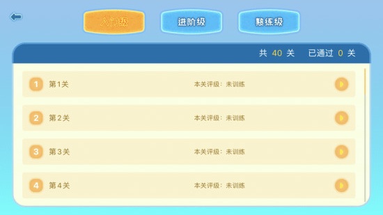 节奏训练:包括入门,进阶,熟练三个练习等级。