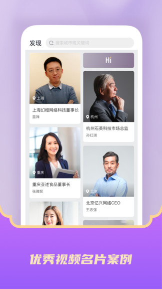 哈啰名片最新版能够帮助用纸只错一个有新意好用的视频名片。用户只要注册成会员就可以使用大量的素材并借鉴一些成功的视频名片的案例再结合自己的创意制作一个出色的视频名片,让客户更加容易了解信任你。