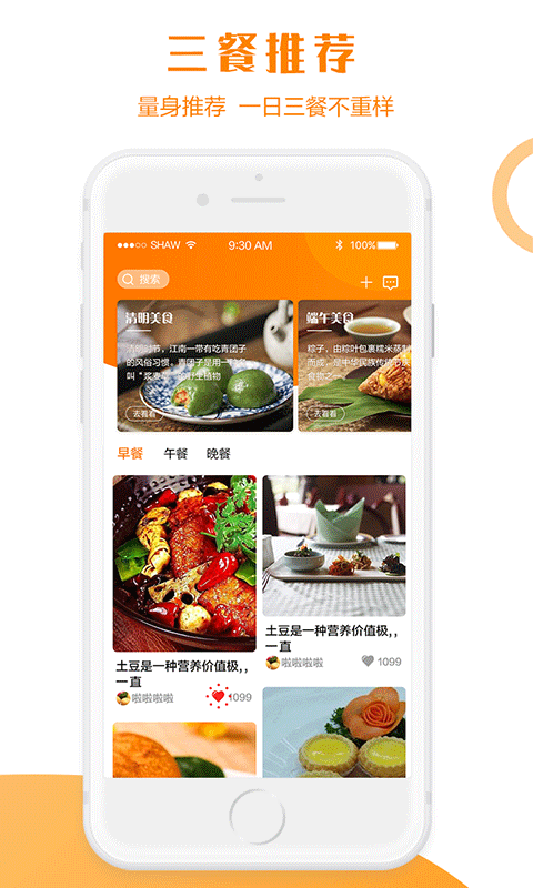 每日早、中、晚餐推荐,让您的生活更健康。 每日美食健康信息,最新美食动态先睹为快。