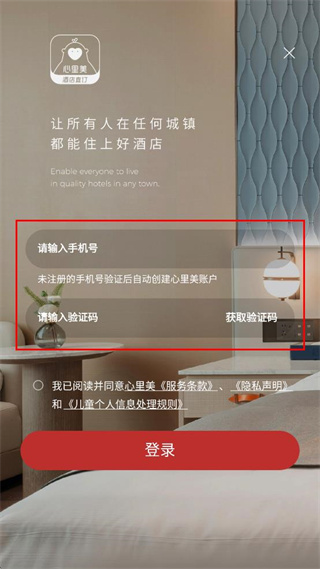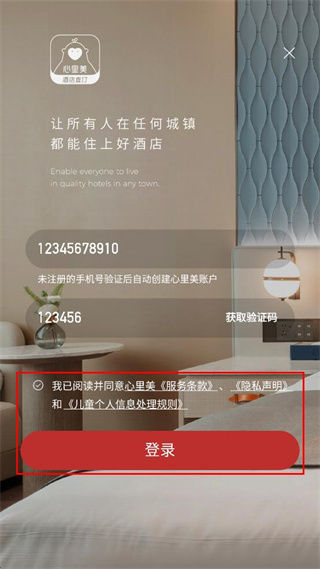 4、填写收到的验证码,勾选相关协议选项,点击登录按钮,完成账户登录操作。