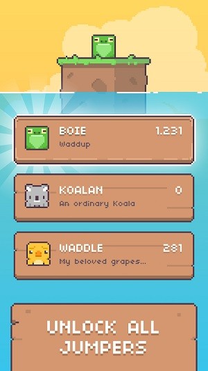 绿脸方块弹跳是一款让人难以停下来的魔性手游,其实有点像当年火了一段时间的掘地求升,也是一样魔性的玩法,前进的方式都很单调,但是不知道为何会有一种魔力让人不断的向前进发。本作需要玩家扮演一个绿色的小方块,唯一需要你做的就是不断向前跳就可,蓄力时间的长久会决定你跳跃高度,但是千万要谨慎的跳跃,不然从高处掉下来又得你重新来过,如果你想锻炼你的耐心的话,这个游戏就是你很好的选择。