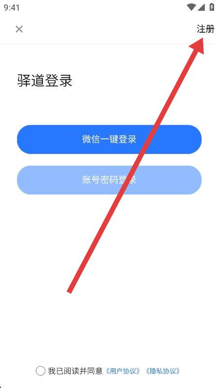 2、在登录页面,找到并点击右上角的注册按钮。