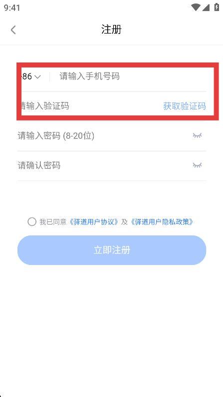 3、填写需要注册的手机号,获取验证码并填入验证码。