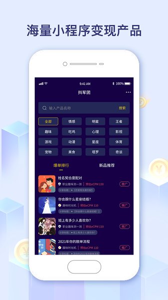 抖军团是一家拥有100万短视频作者的变现平台,里面包含1000+款抖音、快手短视频小程序产品,无需橱窗,无门槛,发视频挂上小程序就能变现!平台旗下的产品覆盖超4亿抖音快手用户,玩法新颖,变现简单!抖军团平台还有完善的导师指导培训,并且提供爆单视频实时监控,多维度订单数据分析,让你的视频也能轻松上热门!