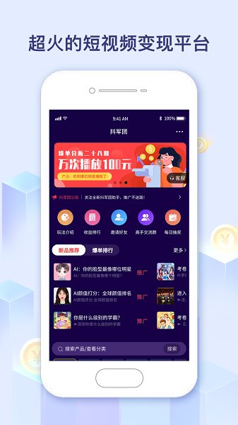 抖军团app非常的独特的短视频赚钱软件,通过视频的点赞转发,推广让你获取丰富的收益,每天的任务推荐让你赚钱可以更加的便捷,让用户看视频发视频带你推广既可以娱乐也可以工作赚钱非常的实用,有需要的用户就来下载吧!