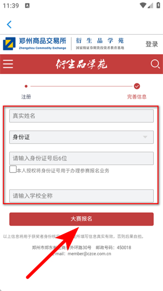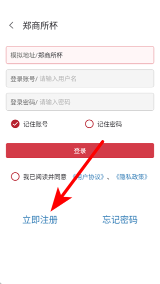 2、在郑商所杯登录页面,点击立即注册,进入注册信息填写页面。