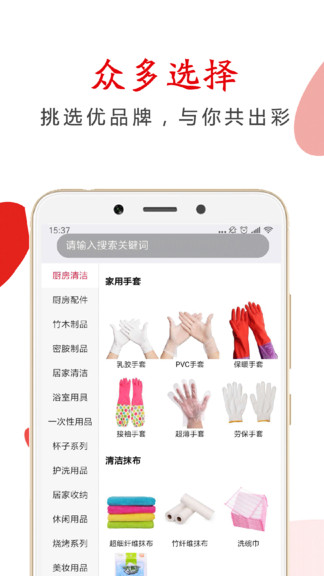 2、还有许多的明细分类,比如厨房清洁栏旁边就有家用手套、清洁球以及清洁抹布多种类别;
