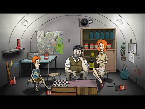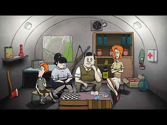 游戏一开始,讲述的是当得知核攻击来袭时,主角Ted和自己的家人生活在郊外的家中,他要事先准备好物资、躲在可以地下堡垒内等待救援人员的救助。在60秒内,他必须要选择带上家中哪些成员,带上多少食物、水以及武器。千万不要小看这部分游戏,这将决定你和你的家人最后会存活多少天!