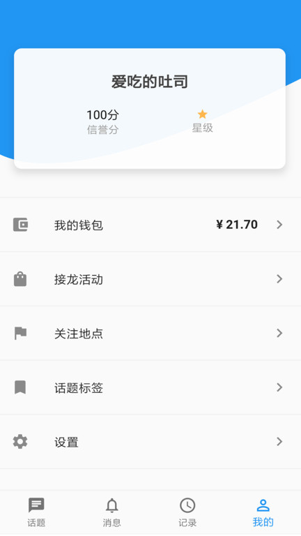 ◆设置话题标签,通过我的主页中,话题标签设置功能,可以自由管理标签。