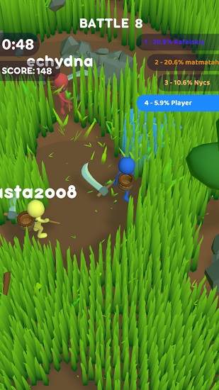 割草大乱斗是一款竞技类的游戏,你在这里需要尽可能多的去割草,并且你还要保证你自己的生存,在割草的过程中还要去击败你的对手,最后在规定时间结束的时候,系统会根据你存活时间和你割草数量进行算分,游戏十分的好玩,你还在等什么,快点来下载体验吧!