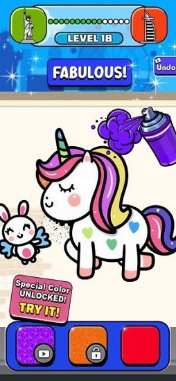 涂鸦喷雾涂料游戏主要是关于绘画涂鸦的。游戏中玩家作为一名涂鸦画作师,根据游戏中给出的样品图,自己给那些没有色彩的画画涂鸦增添颜色,你就像是神笔马良一样,什么东西都能够在你的手中快速形成,绘制的东西十分的丰富,这款游戏可以让玩家们天马行空的去想象,另外对你们的色彩感知力也有很大的帮助。