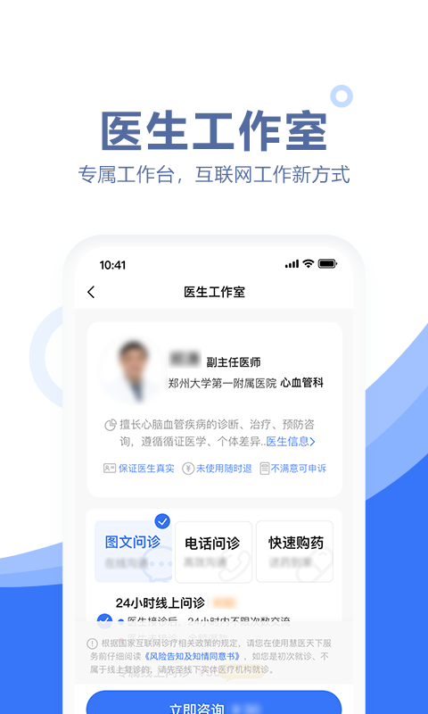 慧医天下,专为医生们打造的专业移动工作台软件,app支持医生线上问诊提供医疗咨询服务,线上复诊开放,高效解决慢病复诊服务,让病人无需出行排队,也能便捷就诊开药,有需要的用户可以下载使用!