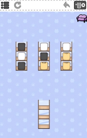 2、此游戏的规则是在每个猫塔中堆叠具有相同图案的猫块。