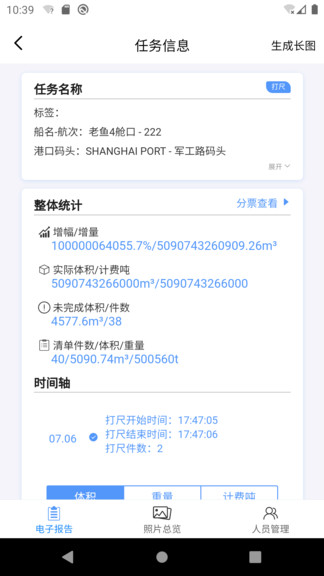 3、在线快速打尺,急速上传货物实时照片,打尺数据一目了然。