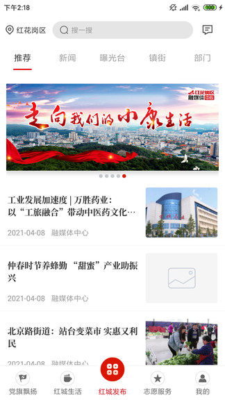 由红花岗区委宣传部主导研发的百姓身边互动平台,通过平台你可以:关注红城资讯;参加志愿服务活动;接通市长热线12345平台;后续陆续建设旅游服务、生活周边服务等。