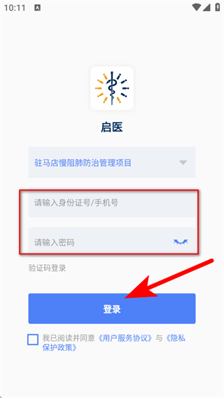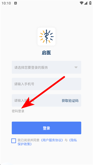 1、打开启医,点击密码登录,切换到密码登录的界面。