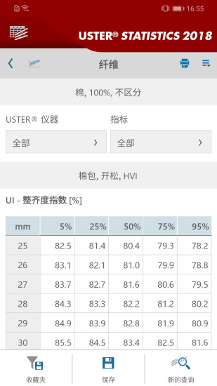 乌斯特公报2018安卓版适合纺织行业的用户来使用,支持在手机上查看详细的纱线原料,有详细的交互式表格,数据丰富,为纺织从业者提供各种数据指标的参考,欢迎有需要的朋友下载使用!