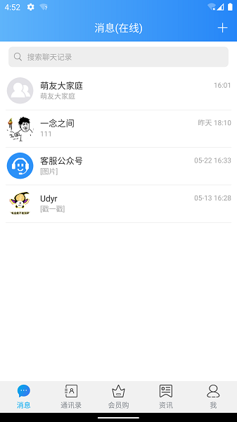 c、为用户带来较好的体验,即时消息/单聊,支持文字、图片、表情、语音、视频、位置、名片、文件等。