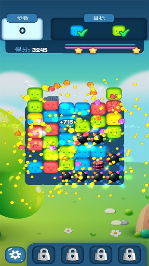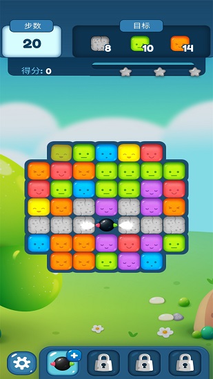 2、缤纷色彩方块随机排布,合理规划点击顺序消除更多的方块,收集特殊道具来帮你通关
