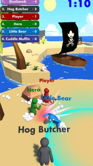 2、控制橡皮人进行摔跤格斗淘汰对手;