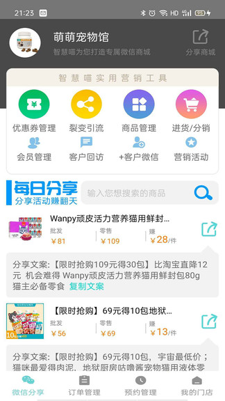 智慧喵是一款专门帮助宠物店运营客户,管理经营的app;在这里你不光可以用拥有自己的微信商城,还可以低价进货分销;让智慧喵携手宠物店一起迈进新零售时代!跟着时代潮流不断前行。