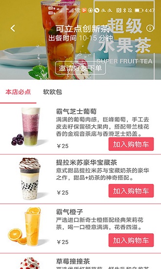 可以在软件的首页直接翻看你想要吃到的美食和饮品。