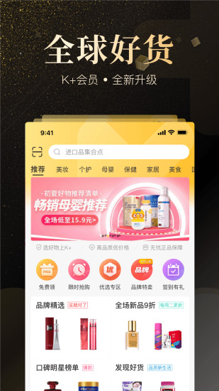 k+会员是一款将全球商品汇聚到一起的全球性手机购物app,在这里你能够找到大量的海内外好货,这里的商品涵盖了生活中的方方面面,食品、百货、美妆护肤、服装鞋饰、母婴用品、酒水饮料等等等等,让用户在这里能够享受一站式购物的便利,每天还有各种优惠购物的活动。
