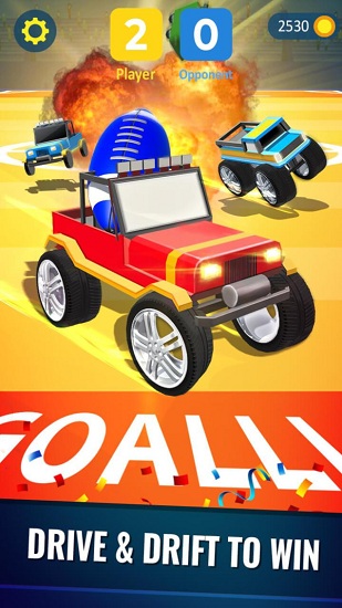 1、利用漂移、完成拦截、断球、射门等动作,在混乱的足球场上尽情漂移。