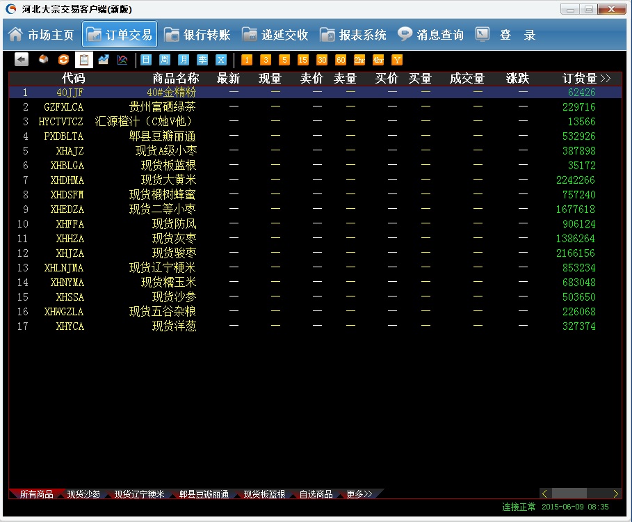 河北大宗交易客户端新版是河北大宗交易所推出的交易软件,具有市场主页,订单交易,银行转账,递延交收,报表系统,消息查询等6大功能,用户下载后输入用户名和密码即可使用,登陆用户名和密码,请向客服索取,免费开户。