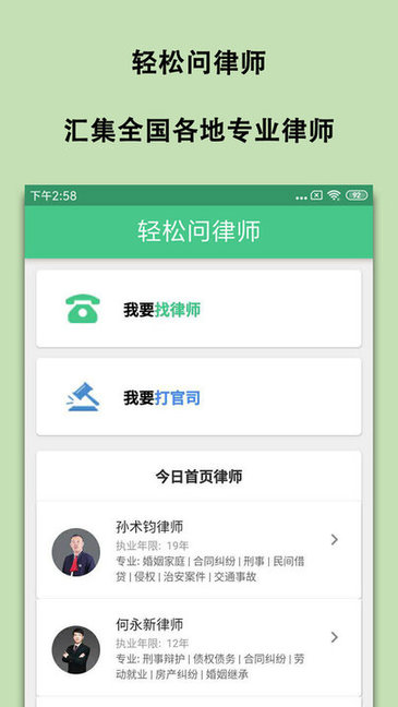 1、海量专业律师在线提供全方位的指导和业务咨询服务